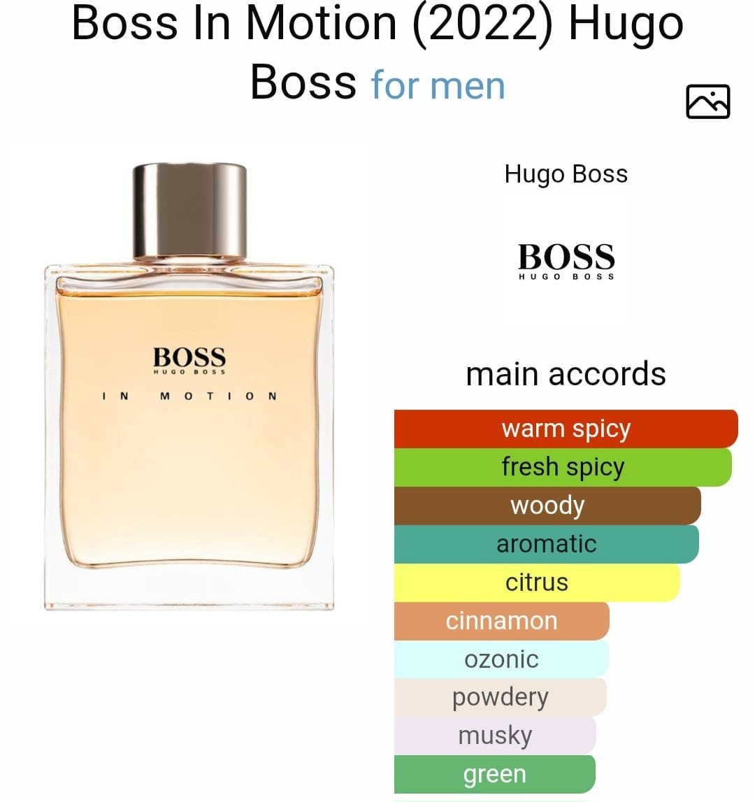 Boss In Motion je miris aktivnog muškarca koji je stalno korak ispred. Svježe citrusne note u kombinaciji sa začinskim i drvenastim akordima daju dinamičan, moderan karakter.