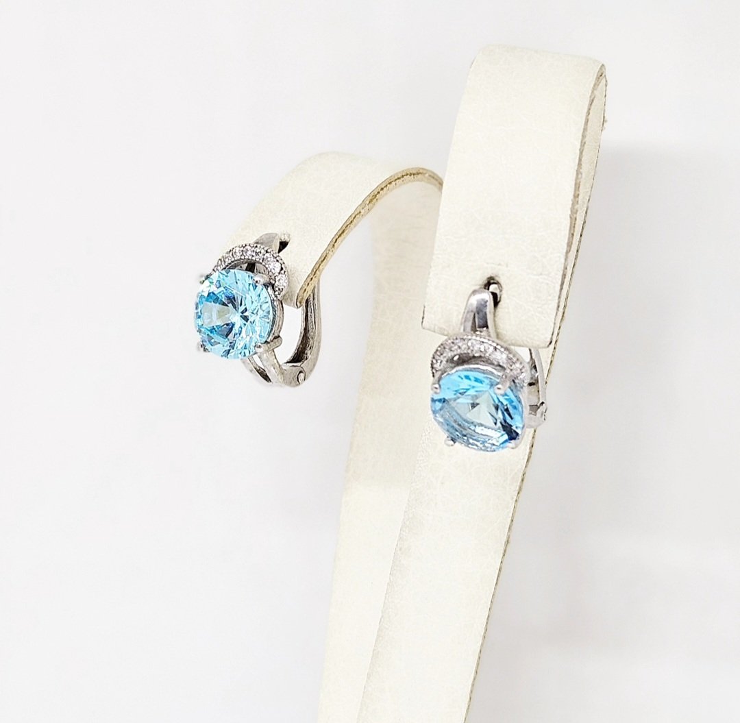 Elegantne srebrene naušnice sa plavim Swarowski kristalima.