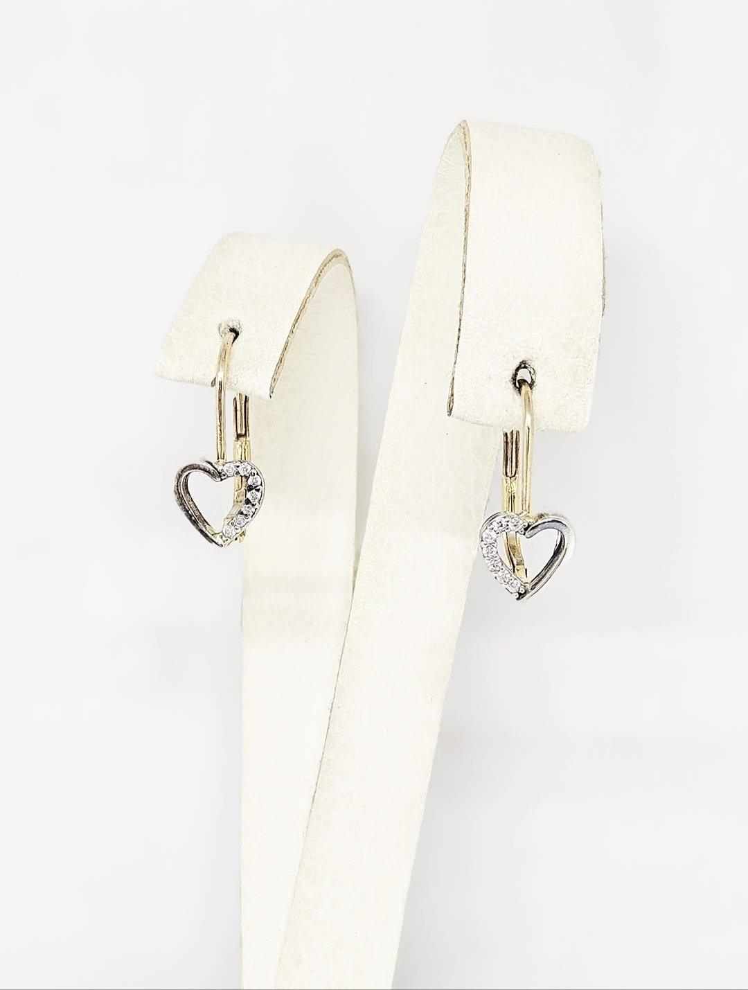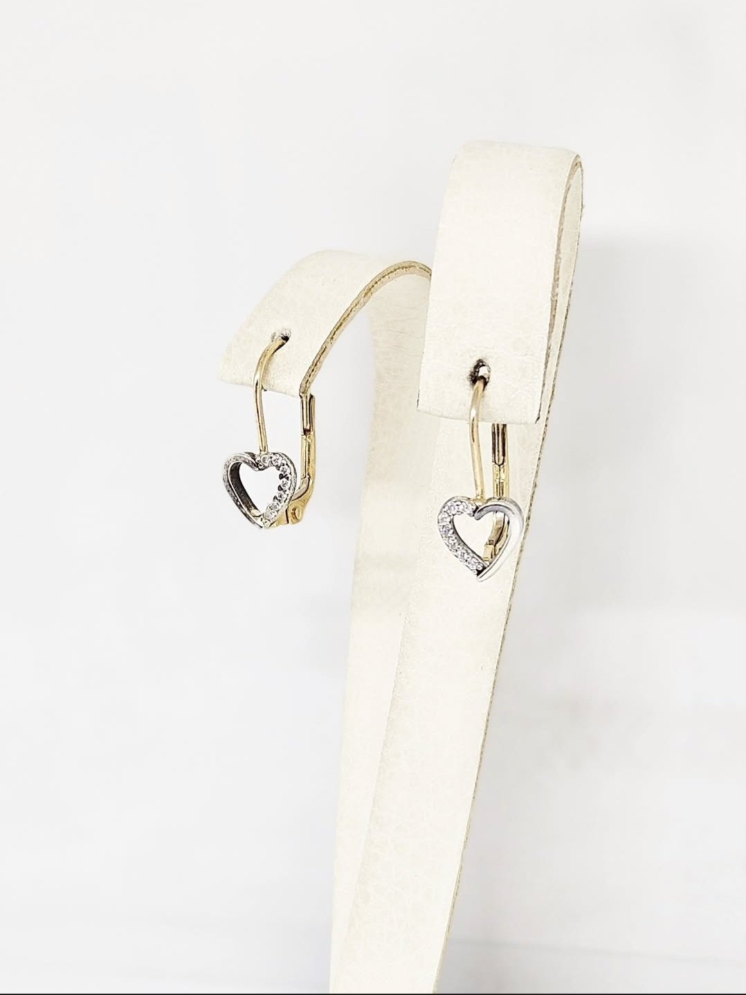 Zlatne naušnice u kombinaciji bijelog i žutog zlata u obliku srca – moderni dizajn koji spaja toplinu i sofisticiranost u jednom komadu nakita.