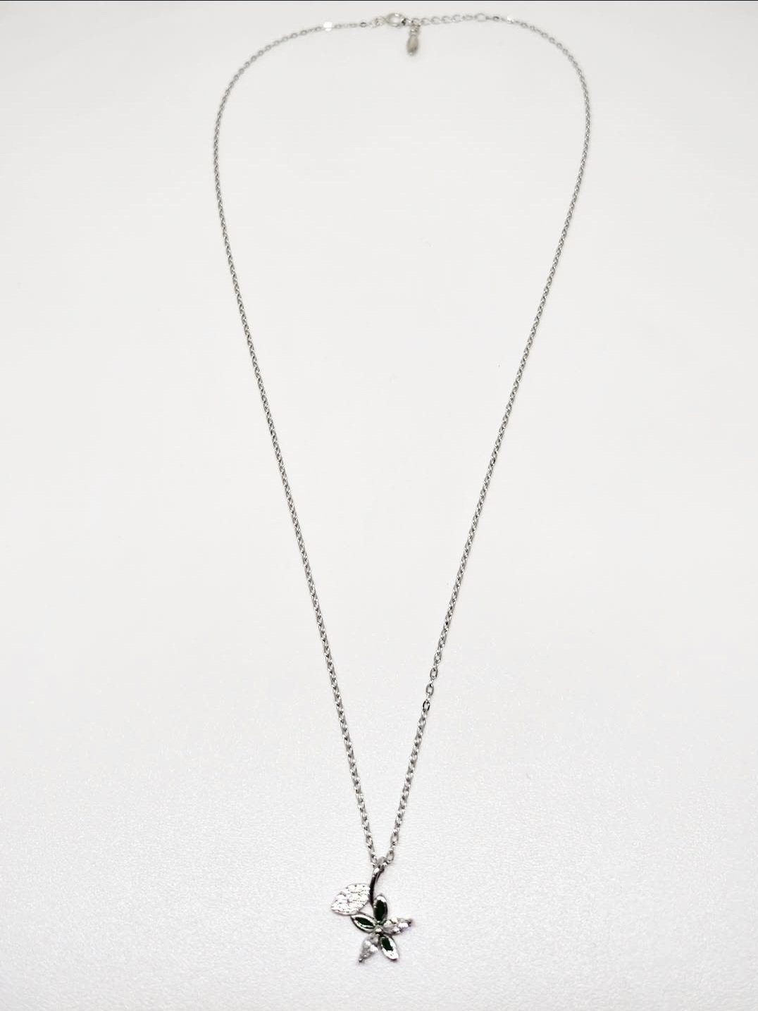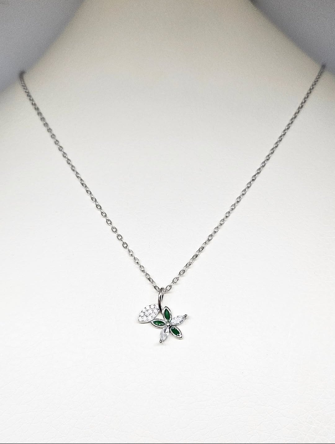 Nježan i svjež dizajn koji donosi dašak prirode u svaki outfit. Cvijet sa zelenim kamenom daje poseban, elegantan izgled, uz podesivu dužinu za savršeno pristajanje.