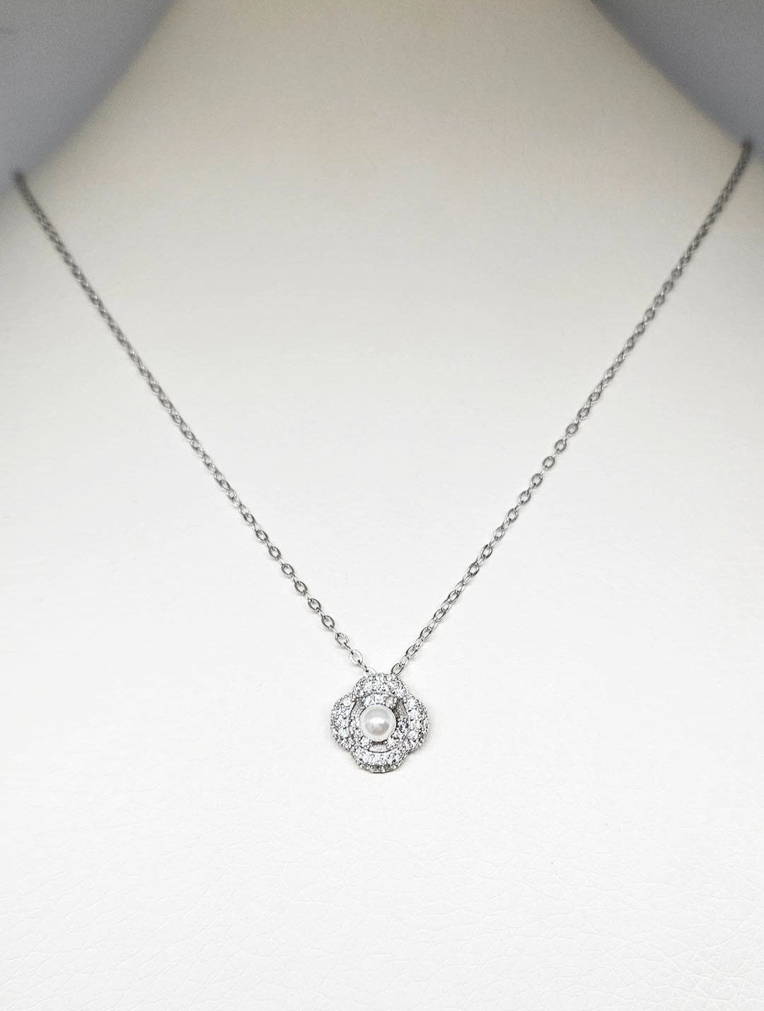 🌸 Srebrena ogrlica u obliku cvijeta sa biserom 🌸
