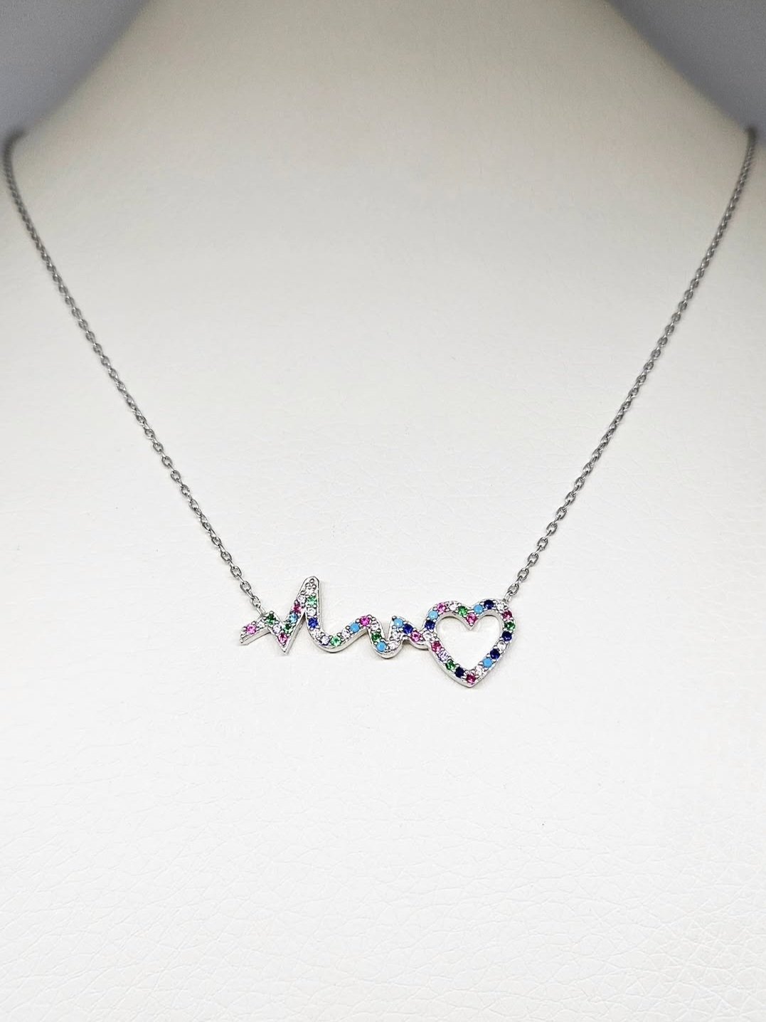 ❤️ Srebrena ogrlica sa otkucajima i srcem sa cirkonima ❤️