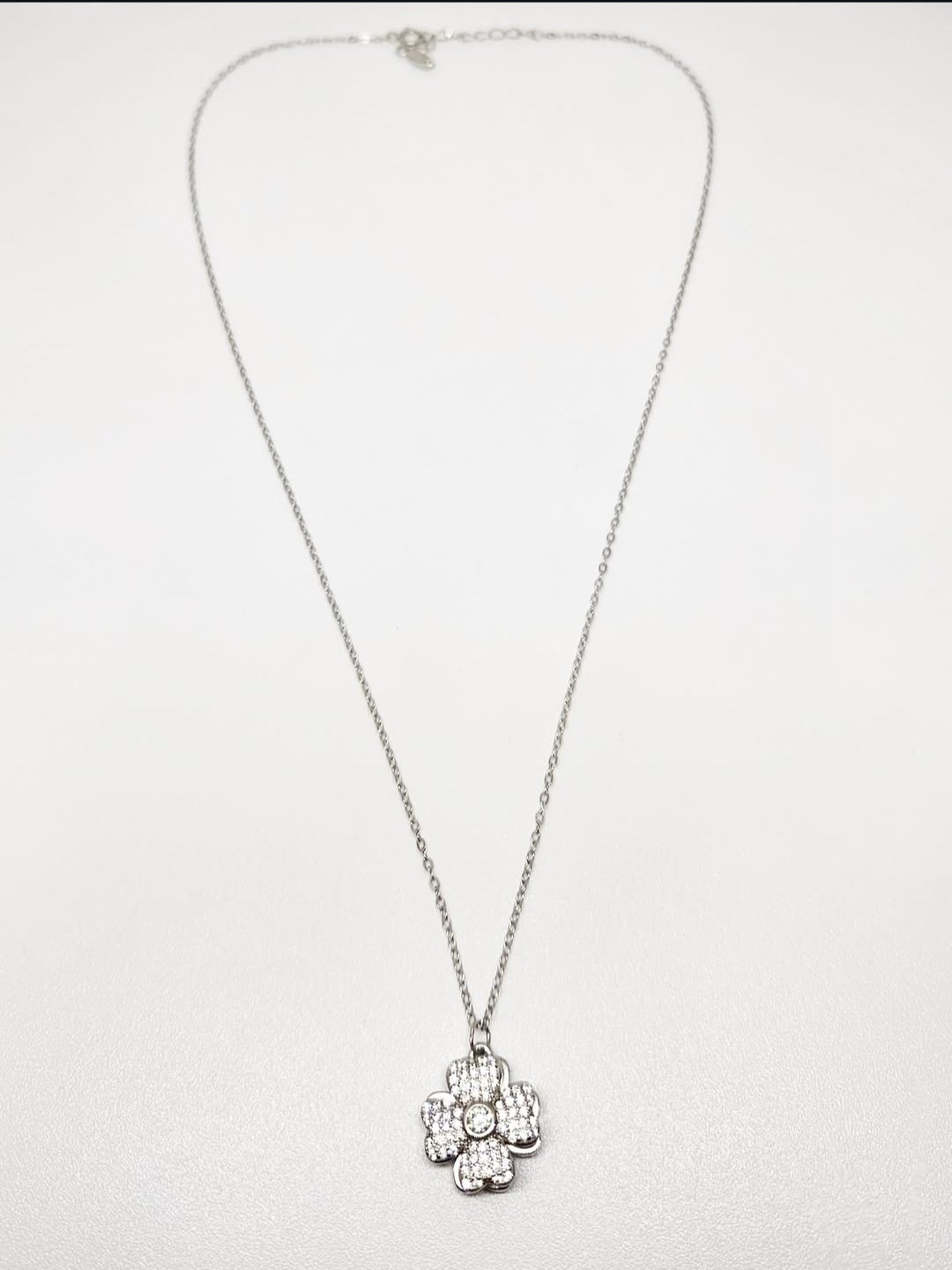 Elegantna ogrlica koja plijeni pažnju svojim sjajem i sofisticiranim dizajnom. Cvijet ukrašen cirkonima daje poseban luksuzan izgled svakom outfitu.