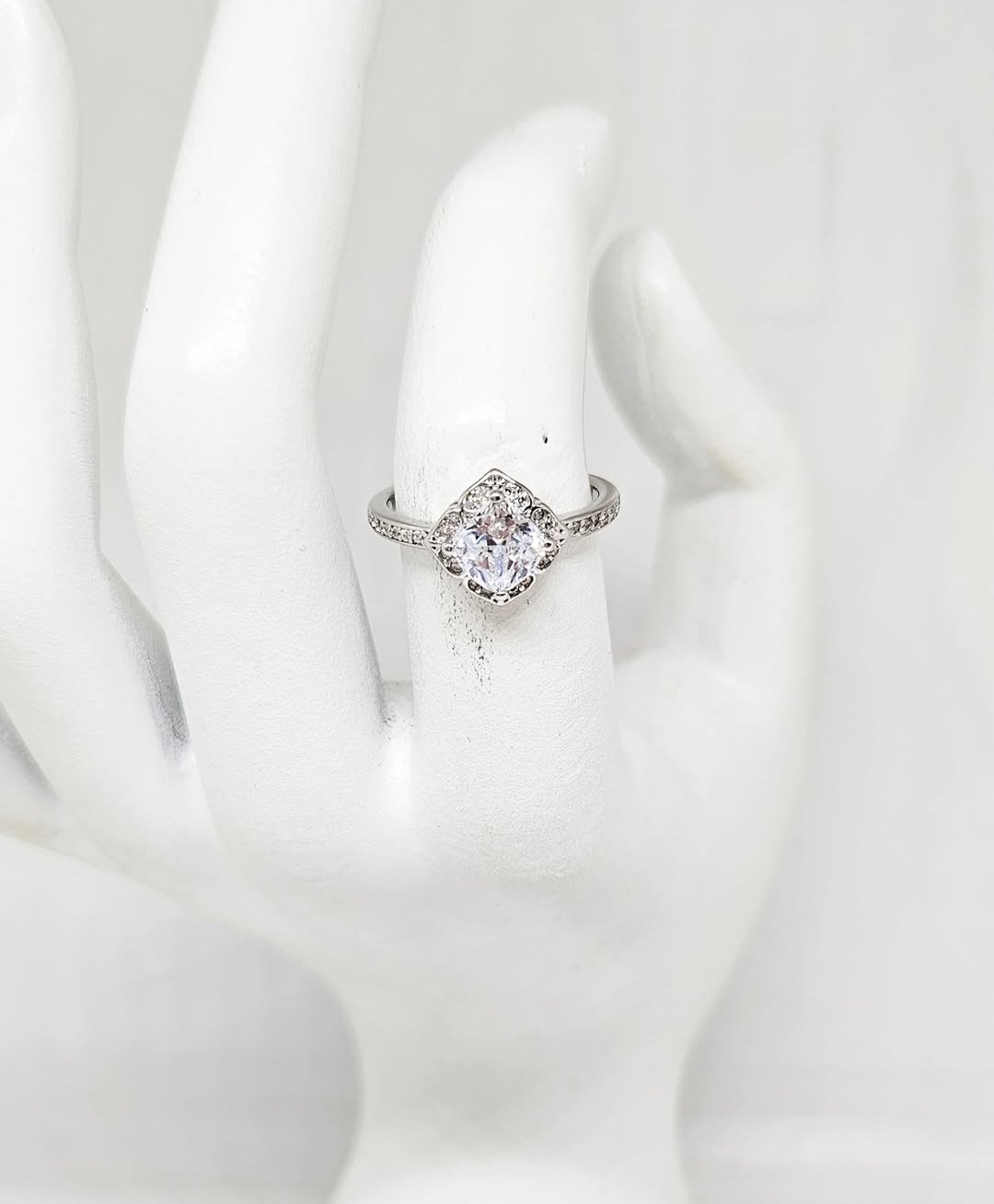 Istaknite se unikatnim dizajnom! Prsten od srebra 925 u prepoznatljivom obliku romba (baklave), optočen blistavim bijelim Swarovski kristalima.