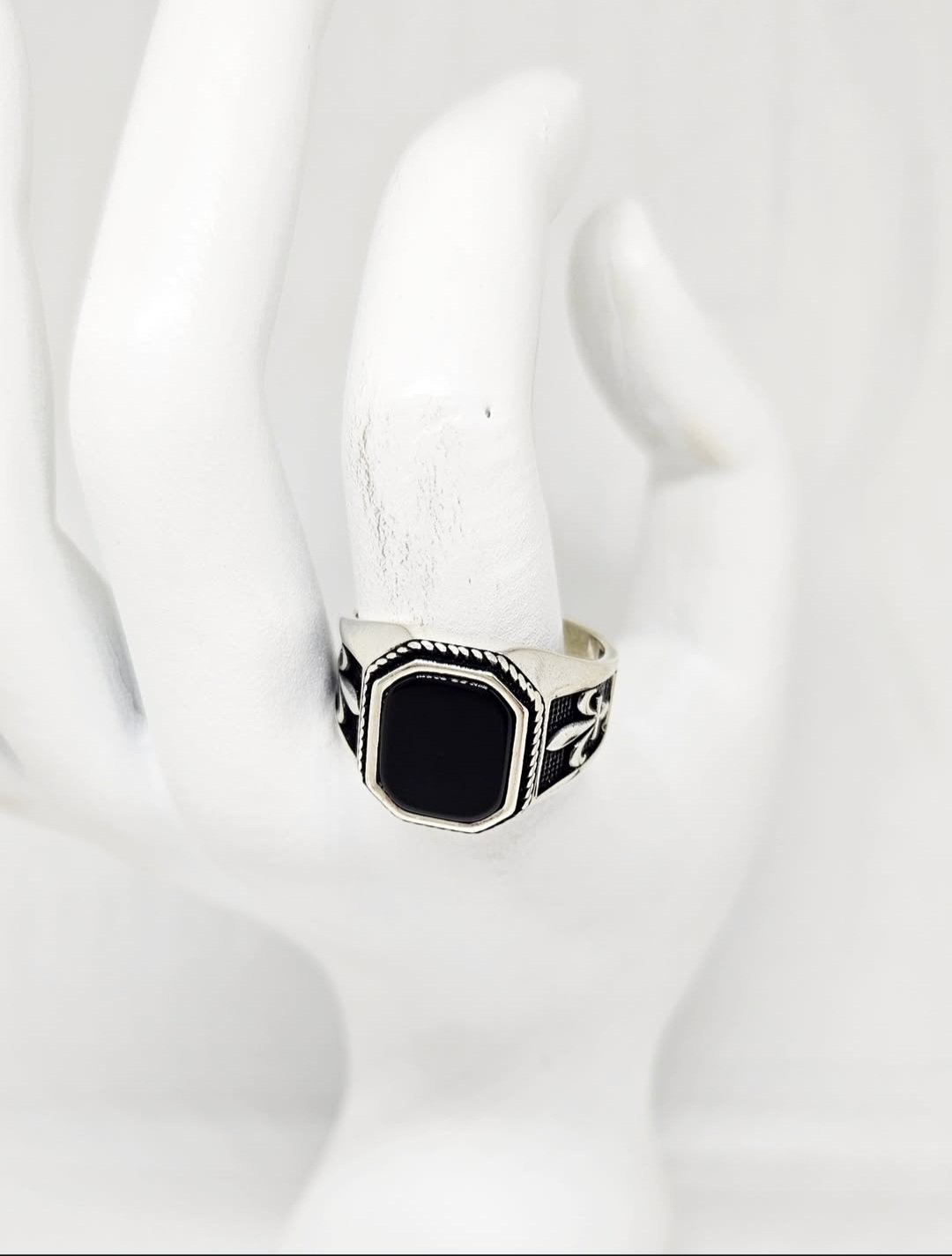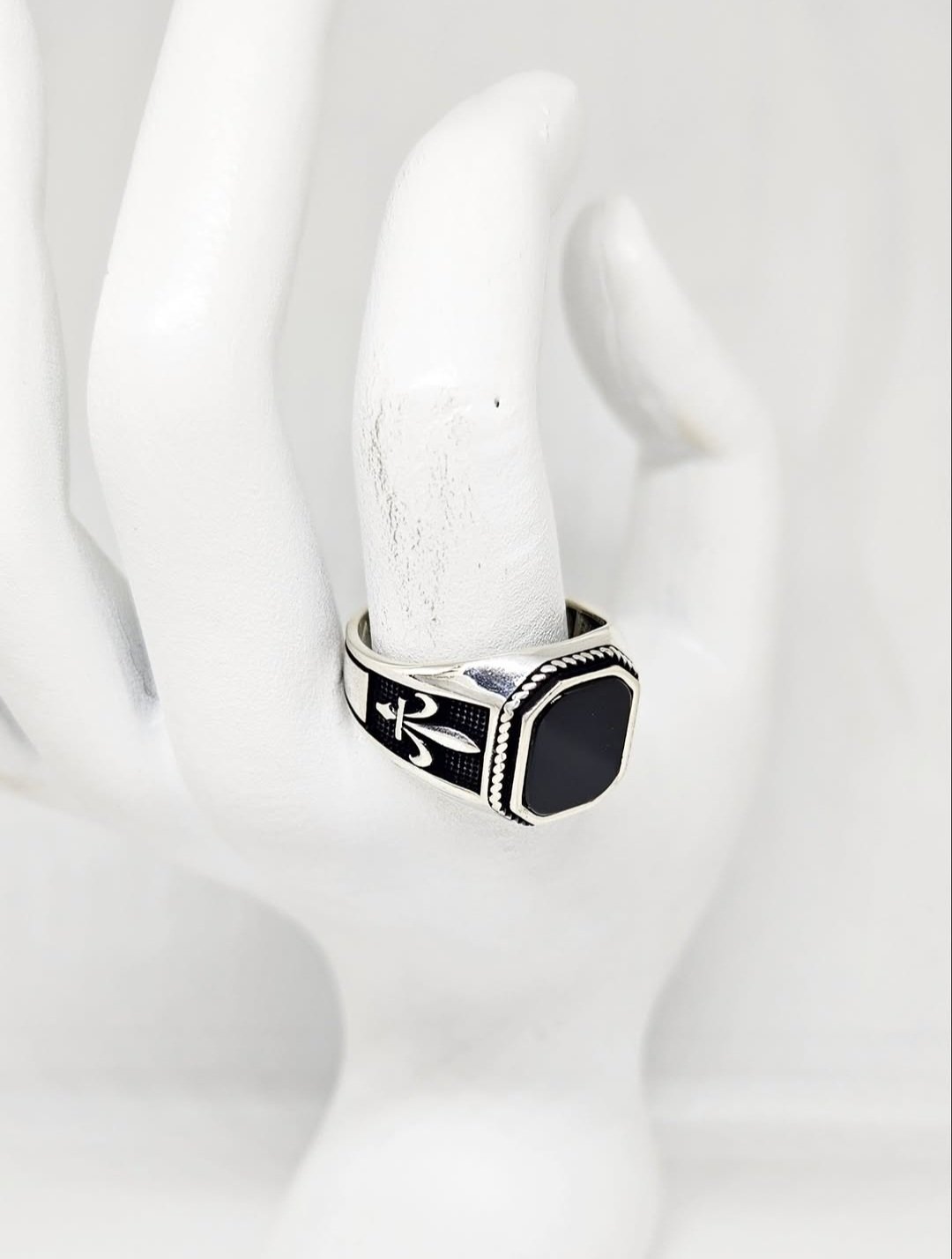 Srebreni muški prsten sa kamenom.