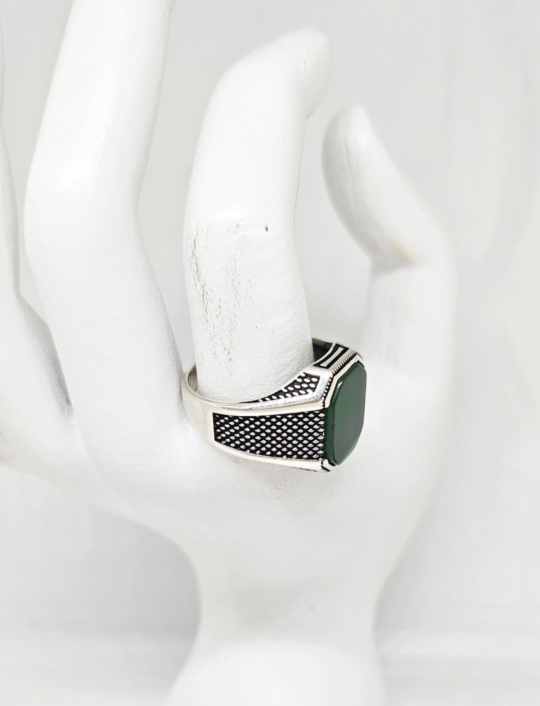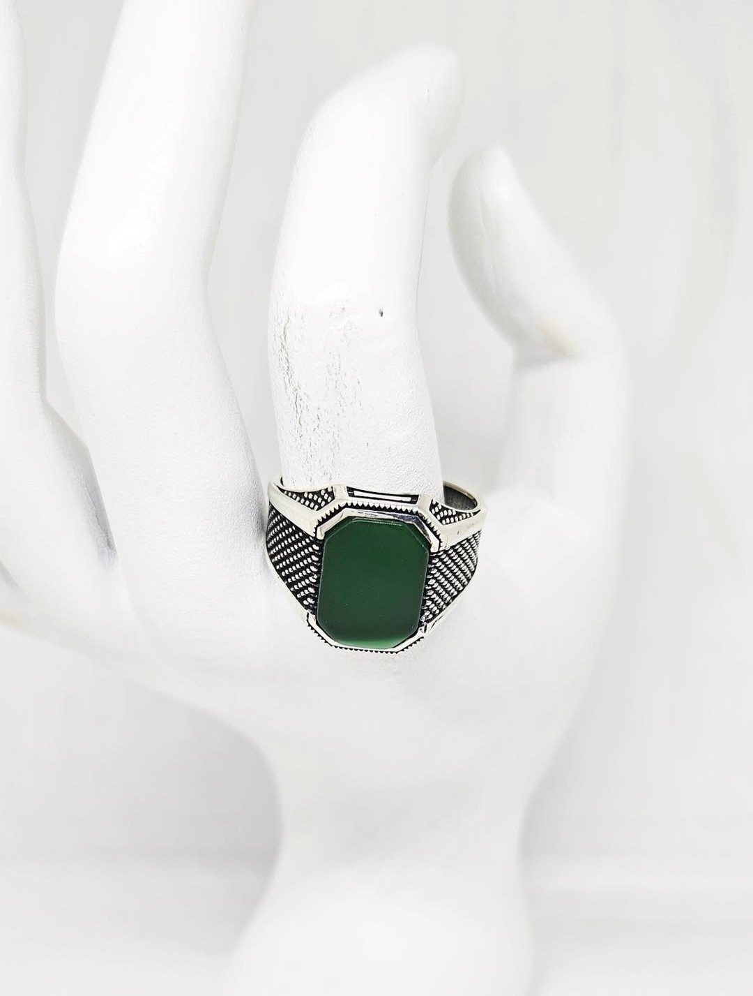 Muški srebreni prsten sa kamenom.