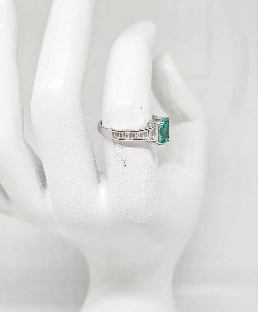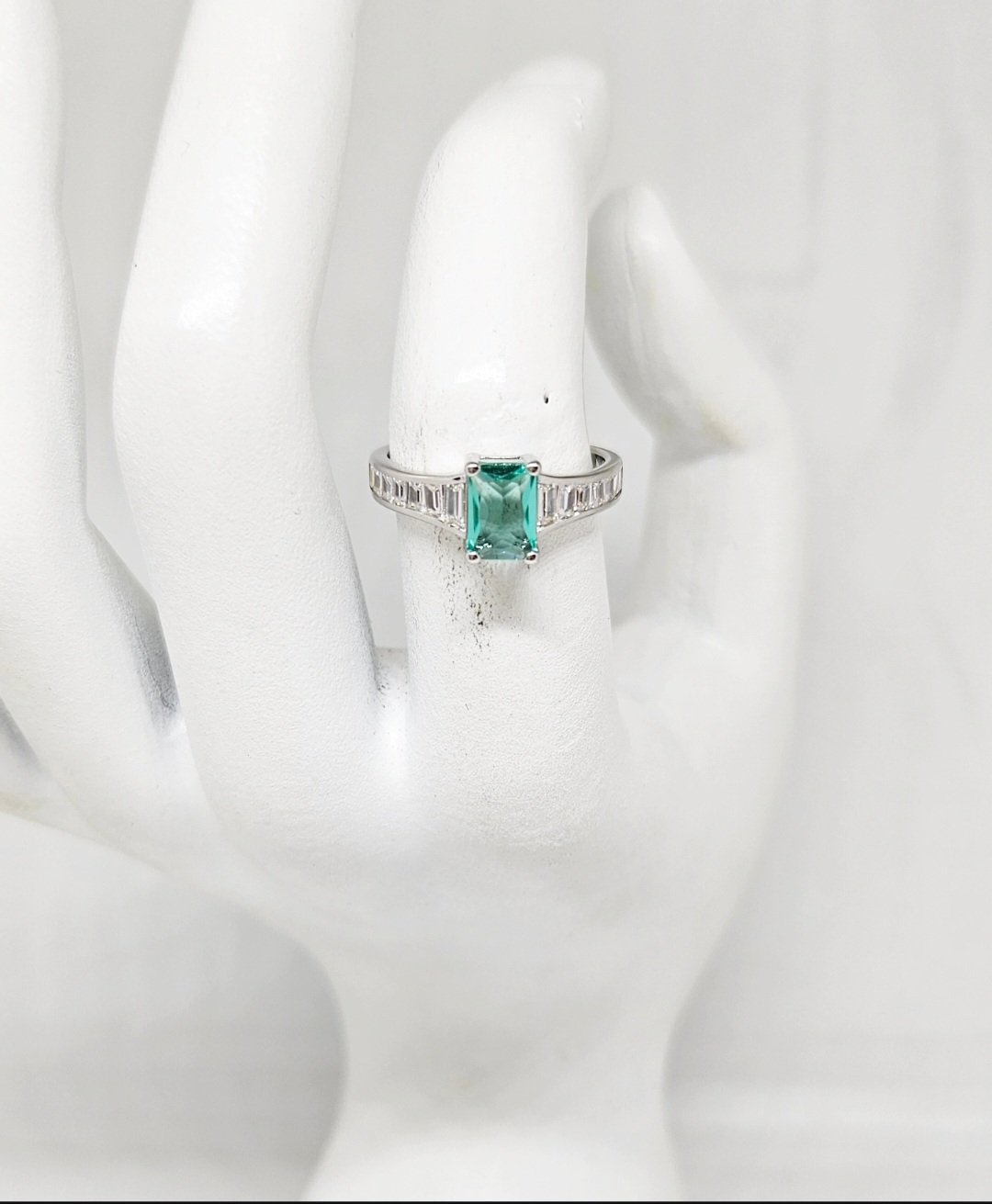 Spoj moderne geometrije i raskošne zelene boje! Prsten od srebra 925 sa blistavim zelenim kristalom u elegantnom pravougaonom rezu.
