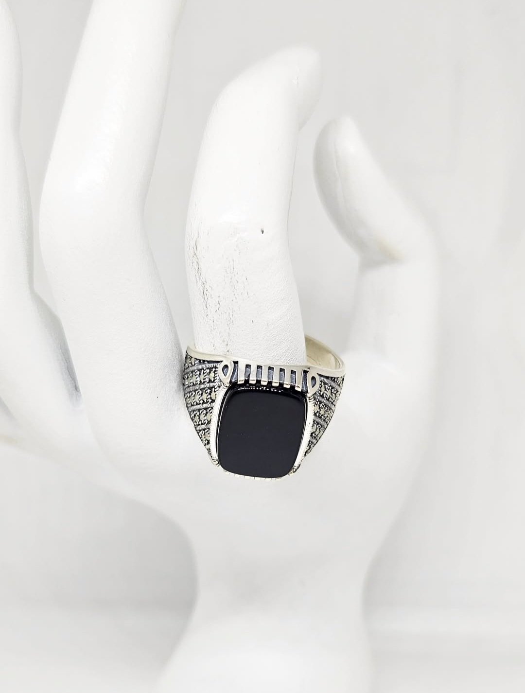 Srebreni muški prsten sa kamenom.
