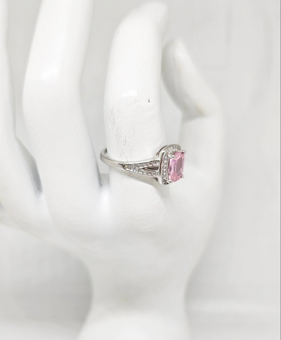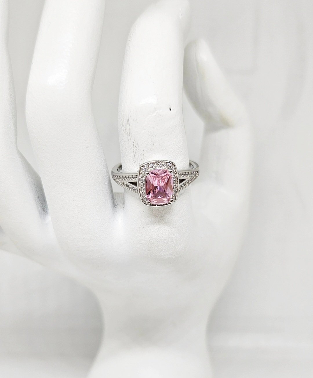 Istaknite svoju ženstvenost uz ovaj predivni prsten od srebra 925. Raskošni rozi Swarovski kristal u pravougaonom obliku pruža nevjerovatan sjaj i eleganciju.