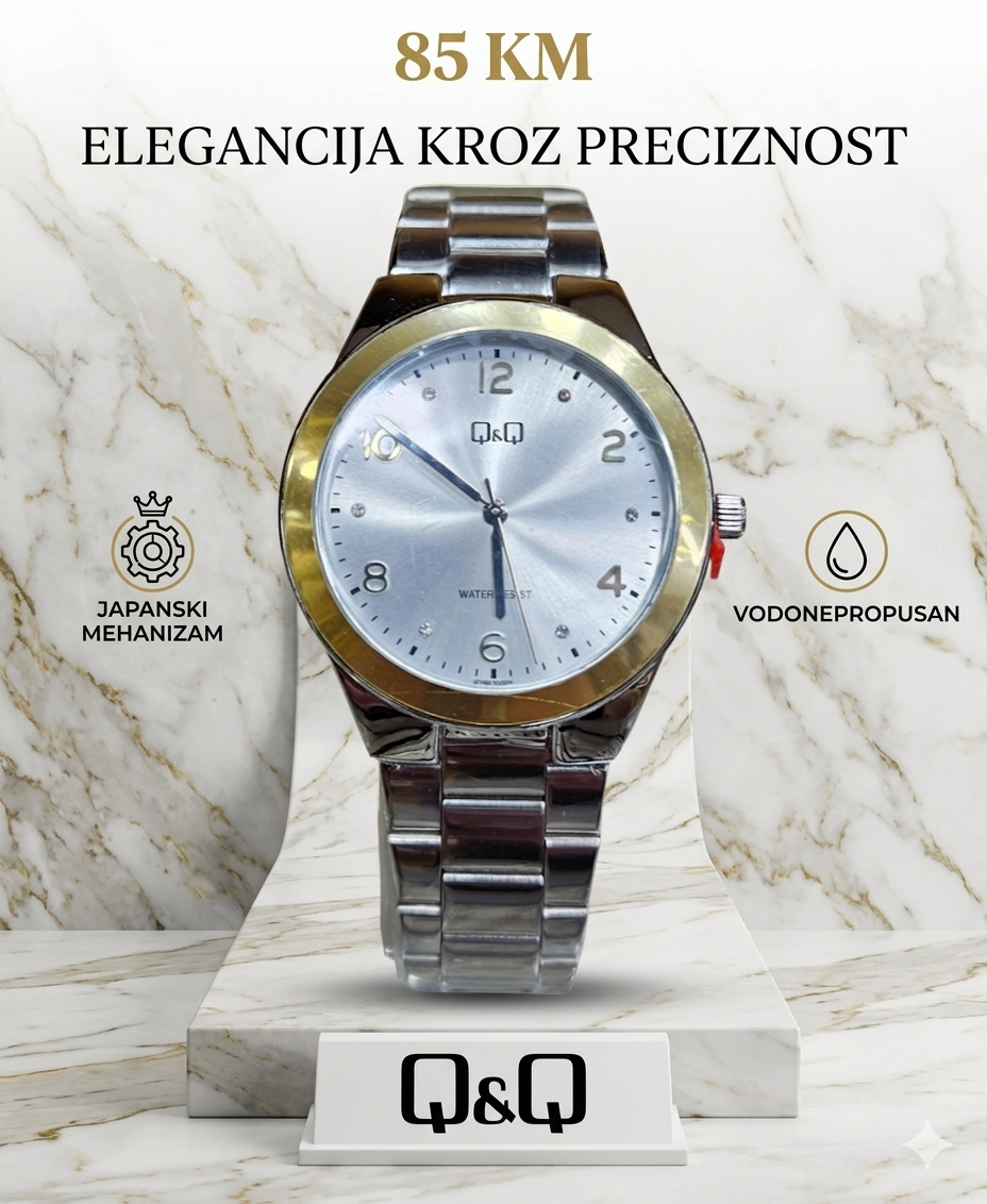 Kada se spoje nježnost nakita i preciznost sata, nastaje Q&Q Lady Grace. Ovaj model je dizajniran za ženu koja voli suptilan luksuz i detalje koji prave razliku. Sa svojim dvobojnim dizajnom, on je savršen dodatak svakoj odjevnoj kombinaciji.