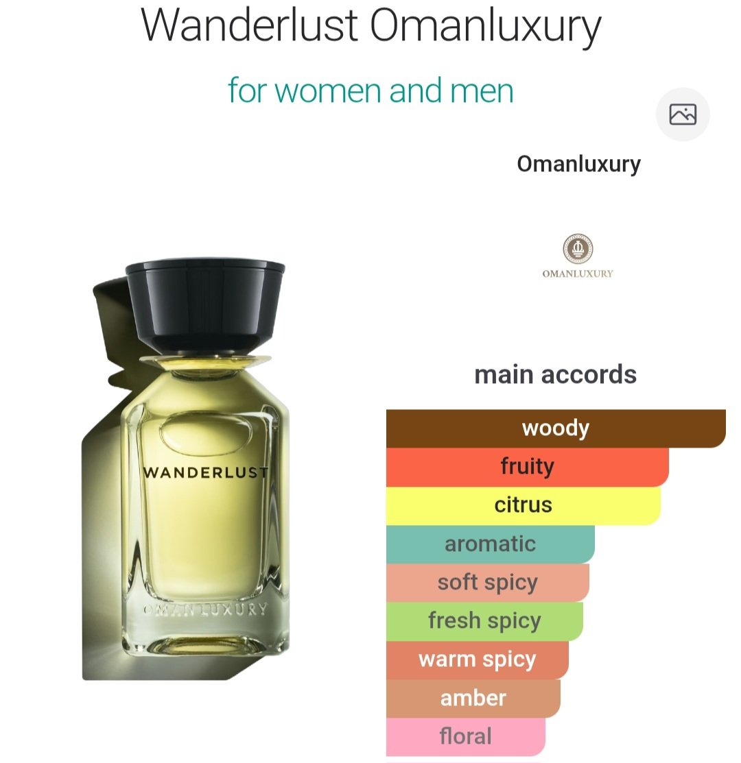 Wanderlust donosi egzotičnu kombinaciju toplih začina, bogatih drvenastih nota i suptilne slatkoće koja stvara sofisticiran i upečatljiv trag.